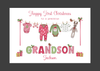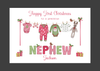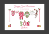 You are purchasing 1 x Personalised First Christmas Card, to a special Son, Grandson, Nephew, Christmas Baby Clothes. Please choose from the drop down menu on purchase. Super cute card, with baby clothes on a washing line with the name. The card is printed on 300gsm White Linen card and comes with an envelope. The card is 21cms x 15cms in size when folded and has been left blank inside. Personalisation: Please provide your wording requirements as soon as possible, in order we can start preparing your card. This can be done either in the personalisation box on purchase or send us a separate message. Please check your spelling when placing your order as we will copy the text exactly as it is in the message you send us. Postage: We aim to dispatch your purchase within 24 hours of payment (Monday to 12pm Friday) - However we cannot guarantee a delivery date, we are reliant on the Royal Mail who advise it can take up to 10 working days for 1st class post to be delivered. We do not provide refunds for late delivery as such we recommend customers purchase their cards at least 14 days before they need them to avoid disappointment, in your card being received after the date you wanted it to arrive. Colour Disclaimer: Although we do our best to make sure that the photo's we take display the colours of the products online accurately, the actual colours may vary slightly, this is due to differences in monitors and the device you use.